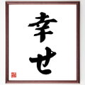 名言「幸せ」を書道家が毛筆書道で色紙に直筆、額に入れてお届けします。当店では挑戦、努力、成功、幸福、感謝、成長、家族、仕事、自己啓発など様々なテーマから人生の糧となる名言、四字熟語、諺、故事成語、格言を厳選、毛筆で直筆、お届けしています。これまで、6,000名以上の方からご注文いただき、お届けしてきました。