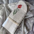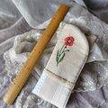 リネンに丁寧に時間をかけてポピーを刺繍しました。