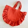 マチにはたっぷりと生地を使ったギャザーが特徴的で、荷物もたっぷりと入れられる大きさも魅力の一つです。