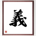 力強い一文字「義」を毛筆書道で丁寧に書き上げた色紙を額装してお届けいたします。義という文字は正しい道理や人として守るべき筋道を表す漢字であり、古来より日本人が大切にしてきた精神的な価値観を象徴しています。武士道においても重要な概念として位置付けられており、損得よりも正しさを重んじる心の在り方を示しています。現代社会においても変わらず通用する普遍的な価値として多くの人に愛され続けている文字です。熟練した書道家が心を込めて筆で書き上げたこの一文字は、シンプルでありながら深い意味を持つ力強い作品となっています。玄関やリビング、書斎、オフィスなどあらゆる空間に品格と落ち着きをもたらし、見る人の心に正義感と責任感を呼び起こします。毛筆の美しい線と墨の濃淡が織りなす書の美しさは、日々の生活の中で正しい判断をするための指針となってくれるでしょう。額に入れた状態でお届けするため、到着後すぐに壁に掛けたり棚に飾ったりしていただけます。ご自宅でのインテリアとしてはもちろん、開業祝いや新築祝い、昇進祝いなどの贈り物としても大変喜ばれています。特に経営者や指導者の方への贈り物として人気が高く、リーダーシップを発揮する際の心構えを思い出させてくれる存在となります。この一文字と書道の美しさが融合した作品は、持つ人の心を豊かにし、人生をより良い方向へ導く力を持っています。毎日目にすることで義の精神が自然と心に刻まれ、迷いが生じた時にも正しい道を選択できるようになるでしょう。書道愛好家の方にも一般の方にも広くお楽しみいただける仕上がりとなっており、日本の伝統文化である書道の素晴らしさを身近に感じていただけます。