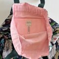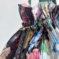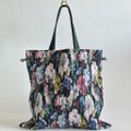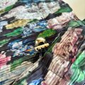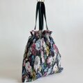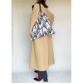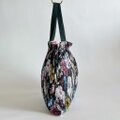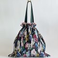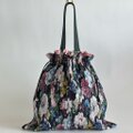 美しい花柄の生地にプリーツ加工された生地を使った巾着バッグです。