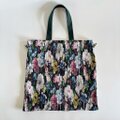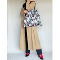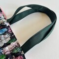これからの季節にぴったりのカラフルな花々は持つだけで華やかな気分になります。ディープグリーンの持ち手とも相性が良く裏地のピンクも差し色として演出しています。