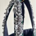 ネイビーベースに鮮やかなの小花柄が可愛らしいジャガード生地を使用したギャザーバッグです。