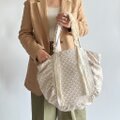 アイボリーの小花柄が可愛らしいジャガード生地を使用したギャザーバッグです。