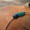 緑~青の小さなインドパシフィックビーズを少しだけ、紐に通してブレスレットに仕立てました。