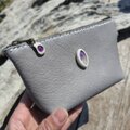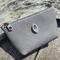 ファスナーには、ちいさなアメジストを埋め込んだオリジナルチャームを付けました。