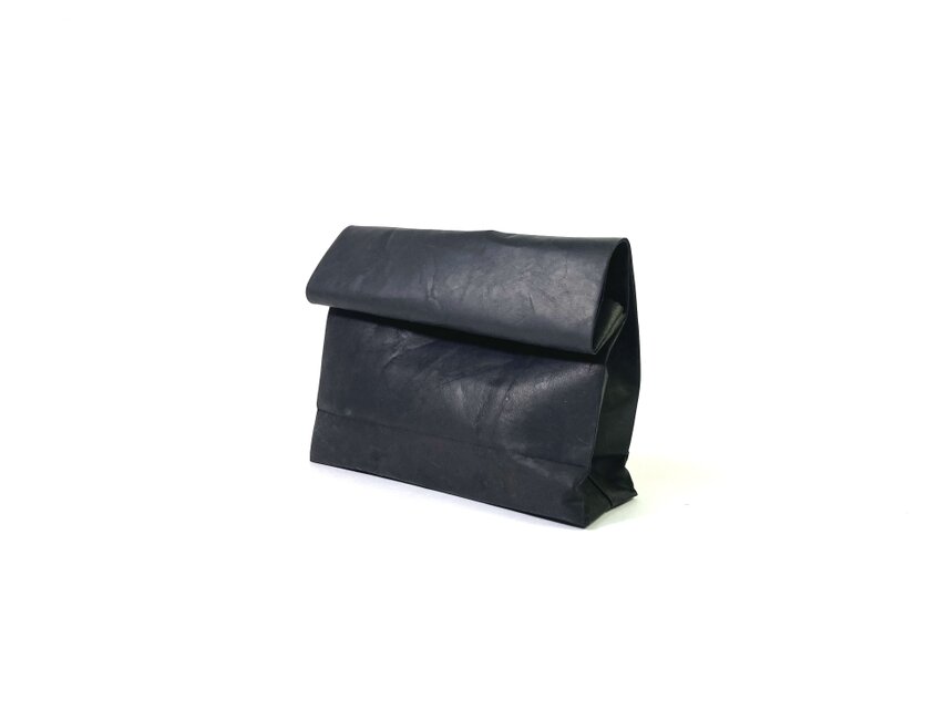 口部分をクルクルと折り返しサイズ調節できるクラッチバックです。