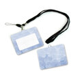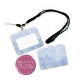 ブルーのお花(あじさい)をモチーフにした優しく淡いブルー配色の職場でのスタッフパスやコンサートや各種イベント、展示会のスタッフパス収納に最適のIDケース/IDカードホルダー(ネックストラップ付き)です。