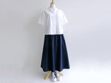 播州織のタイプライタークロスを使った、シンプルなフレアギャザースカートです。