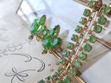 1950年代頃のヴィンテージ、ペリドット色のGlassが54粒連なったとても美しいネックレスです。