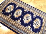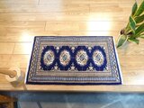BlackFriday11/24迄iichi限定目玉】パキスタン絨毯 ハイクオリティ ボハラデザイン 77x45cm 紺色