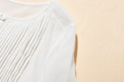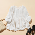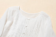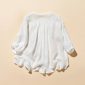 ふんわりAラインが可愛い! 風通し良く夏らしい麻ブラウス ピンタック入りブラウス ホワイト 250422-1