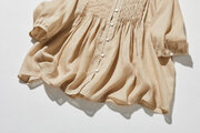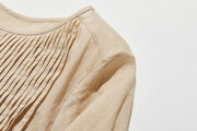 ふんわりAラインが可愛い! 風通し良く夏らしい麻ブラウス ピンタック入りブラウス ベージュ 250422-2