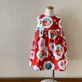 子供 浴衣地ひかえめフレアーワンピース 注染うちわ(赤地) 80-130サイズ〈受注製作〉
