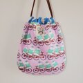 自転車かばさん柄で作った可愛いきんちゃくです。