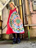 タイダイ ノースリーブワンピース 幻想的な大曼荼羅 紅赤色 HD23-95
