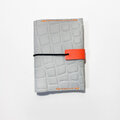 型押しイタリアンレザーのカードケース(グレー×ネオンレッド)