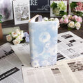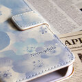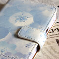 ブルーのお花(ネモフィラ)をモチーフにした優しく淡いブルー配色のヌメ革風の風合いが特徴のスタンダード手帳型スマホケースです。
