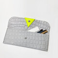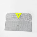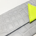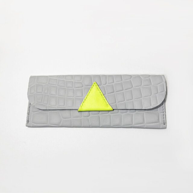 型押しイタリアンレザーのペンケース(グレー×ネオンイエロー)
