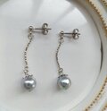 こちらは、ナチュラルグレーカラー珠のあこや本真珠のチタン製のピアスでございます。