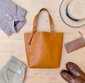 <A4がすっぽり入る>一枚革のBASICトートバッグ(メンズ/レディース/シンプル/大容量/肩掛け/軽い)キャメル