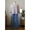 フレンチスリーブのフリルブラウス コットンリネン ベージュ(M)フリルのブラウス、はなやかで上品!そでぐりもフリルに近い加工があって凝ってます。