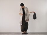 最初はハリがありますが、洗いをかけるほどふわっと肌馴染み良く変化していきます。左右非対称なデザインとなっていますので、巻き方により違うデザインが楽しめます。