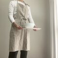 素材に高品質な素材、ベルギーリネン25番手を使用したワークエプロンです。