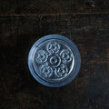 見込みに花文様◆昭和後期 プレス・曇りガラス中皿 プレスガラス 小物置き インテリア