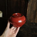 赤で素敵◆時代物 漆芸蓋付碗 漆器 骨董・antiques 古民家 古道具 明治〜大正期 bi1