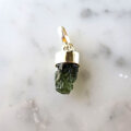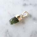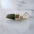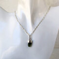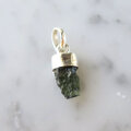 チェコ産モルダバイトをシルバーで留めたシンプルでユニセックスなデザインのペンダントヘッド。