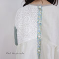 お袖には、くすみグリーンのマトラッセレースコットン、