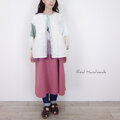 くるみボタンで留めて羽織として、反対側を前にしてプルオーバーにも。