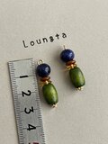 送料無料 ウッドビーズピアス ウッドビーズネイビー グリーン チェコビーズの個性派ピアス
