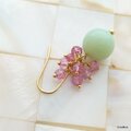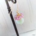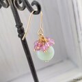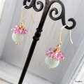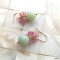 まったりしたグリーン寄りのアマゾナイトにピンクを添えたら可愛らしい雰囲気のピアスが出来ました。