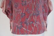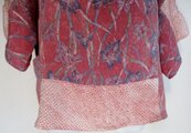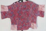 正絹の花柄の着物と正絹の絞りの着物を組み合わせて作りました。