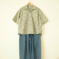 そのオリーブの小枝柄の生地でオープンカラーブラウスを作りました☆