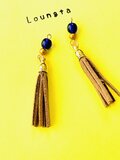 送料無料 チェコビーズネイビーとタッセルピアス ブラウン
