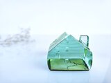 ガラスをブロック状に溶かしてから、削り出して磨き上げた作品。
