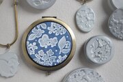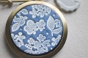 アンティークゴールドのミラーに、陶土で作った草花模様のプレートを合わせた作品です。