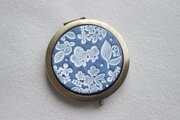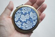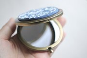 コンパクトタイプで、中のミラーは片方が拡大鏡になっています。つまみを押しながら開閉してください。
