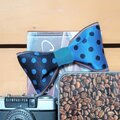 色は「青地に黒の水玉」「黒地に青い水玉」「深い緑」の3つから、リボンの左右それぞれお好きな組み合わせでお作り致します。
