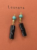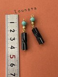 チェコビーズピアス ターコイズとブラックチェコビーズのかっこいい夏ピアス ガラスビーズピアス