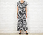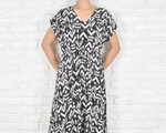 【大きいサイズ】新作!エスニック柄Vネックフリルワンピース ブラック