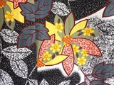 黒にピンクやイエローのお花がレトロな感じで可愛いです。