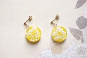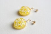 レジンアート ラウンドピアス〈紫陽花②イエロー〉