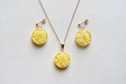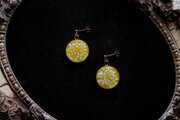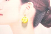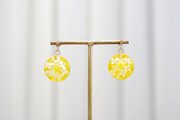 何層にも重ねた黄色の紫陽花の花びらがなんとも可憐で明るいピアス。
