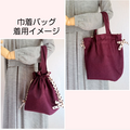 中身が見えないように紐を絞って巾着バッグとしてだけでなく、あえて紐は絞らなくてトートバッグとして、2WAY仕様可能です。