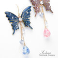 下で揺れる雫は立体的で、中には上の蝶の色に合わせたスワロフスキーが入っていてとても綺麗です!