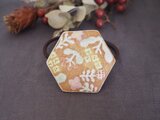 茶色の小さな土の玉を、手の中で六角形に作り上げた一点もののアクセサリーになります。